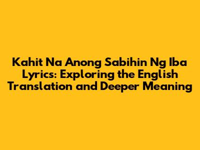 Hey everyone! Ever found yourself humming a tune, totally vibing with it, but you're not quite sure what it means? That's totally me with the song "Kahit Na Anong Sabihin Ng Iba." It's a popular track, and if you're like me, you probably want to understand what the lyrics are really saying. So, let's dive into the English translation of "Kahit Na Anong Sabihin Ng Iba" lyrics, break down the meaning, and see why this song hits so many feels, shall we?