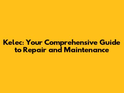 Kelec: The Ultimate Guide To Repair And Maintenance