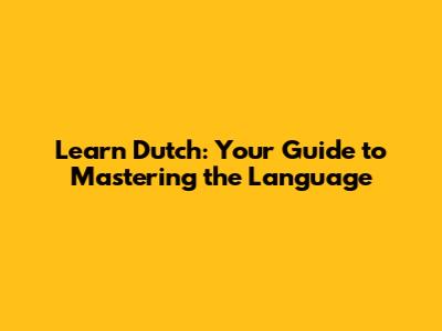 Learn Dutch: Your Guide To Mastering The Language