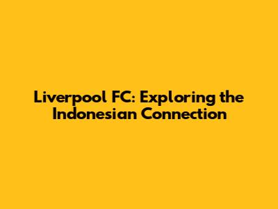 Liverpool FC: Exploring The Indonesian Connection