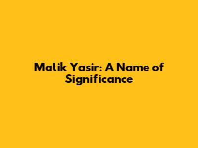 Why the Name Malik Yasir Resonates
