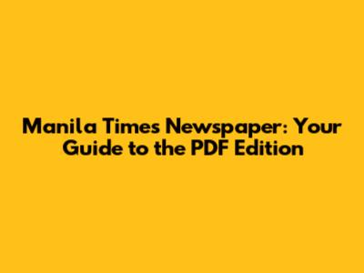 Why You Might Want the Manila Times Newspaper PDF