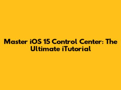 Master IOS 15 Control Center: The Ultimate ITutorial