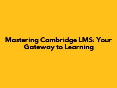 Mastering Cambridge LMS: Your Gateway To Learning