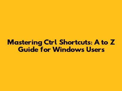 Mastering Ctrl Shortcuts: A To Z Guide For Windows Users