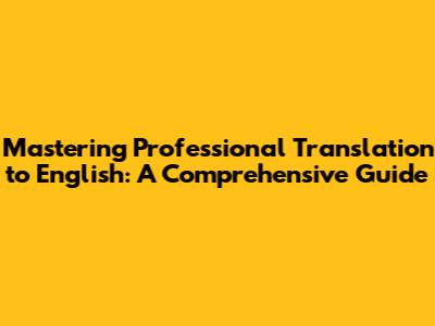 Mastering Professional Translation To English: A Comprehensive Guide