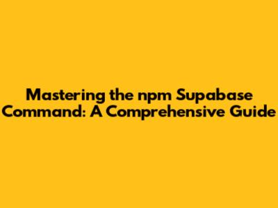 Mastering The Npm Supabase Command: A Comprehensive Guide