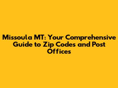 Hey there, folks! If you're looking for the lowdown on Missoula, Montana, and specifically need info on zip codes and post offices, you've come to the right place. Navigating the postal system can sometimes feel like a maze, so we're here to be your friendly guide. We'll break down everything you need to know about Missoula's zip codes, where to find your local post office, and even some handy tips to make your mailing experience a breeze. Get ready to become a Missoula zip code pro!