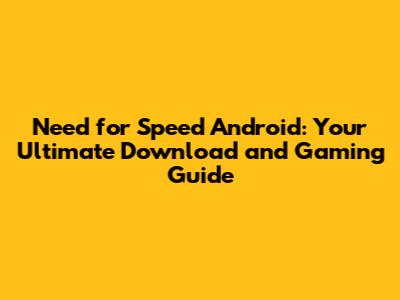 Need For Speed Android: Download And Gaming Guide