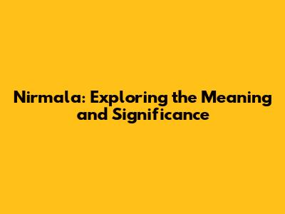 Nirmala: Exploring The Meaning And Significance