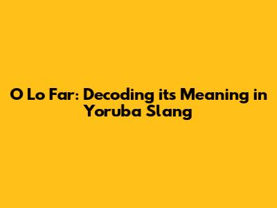 O Lo Far: Decoding Its Meaning In Yoruba Slang