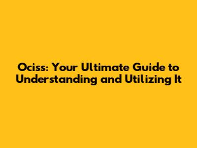 Ociss: Your Ultimate Guide To Understanding And Utilizing It