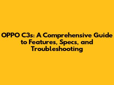 OPPO C3s: Features, Specs, And Troubleshooting Guide