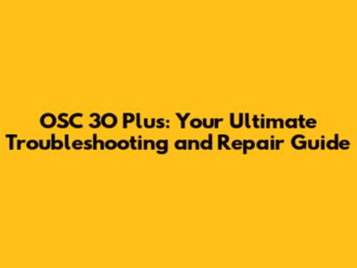 OSC 3O Plus: Troubleshooting And Repair Guide