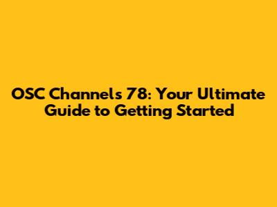 OSC Channels 78: Your Ultimate Guide To Getting Started