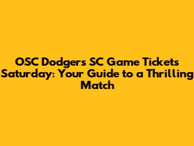 Hey sports fans! Are you ready for an exciting Saturday? If you're a soccer enthusiast, especially a supporter of the OSC Dodgers SC, then you're in the right place! We're diving deep into everything you need to know about getting your hands on those coveted game tickets for this Saturday's match. From where to buy them, to what to expect, and even some insider tips, we've got you covered. So, grab your jerseys, get hyped, and let's get into the details of securing your spot at the game!