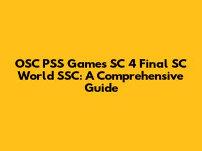 I hope this guide helps you navigate the exciting world of OSC PSS Games SC 4 Final SC World SSC! Good luck to all the participants, and may the best gamer win!