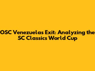 OSC Venezuela's Exit: Analyzing The SC Classics World Cup