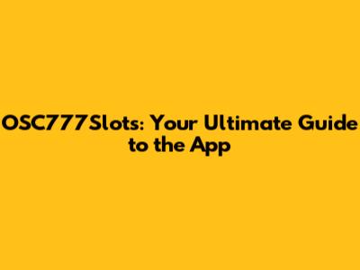 OSC777Slots: Your Ultimate Guide To The App