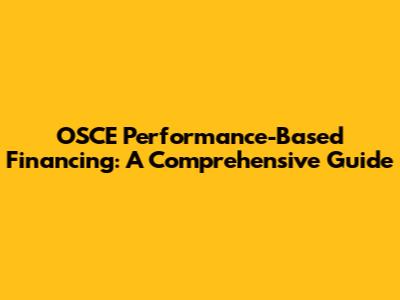 OSCE & Performance-Based Financing: What You Need To Know