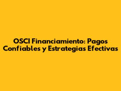 OSCI Financiamiento: Pagos Confiables Y Estrategias Efectivas