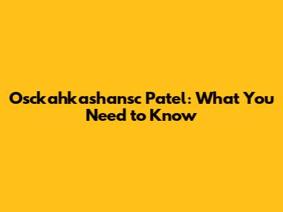 Osckahkashansc Patel: What You Need To Know