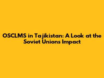 OSCLMS In Tajikistan: A Look At The Soviet Union's Impact