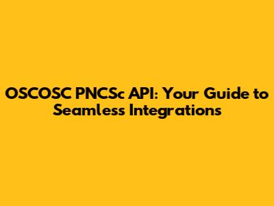 OSCOSC PNCSc API: Your Guide To Seamless Integrations