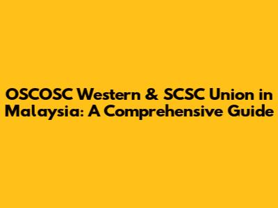 OSCOSC Western & SCSC Union In Malaysia: A Comprehensive Guide