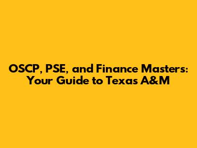 OSCP, PSE, And Finance Masters At Texas A&M
