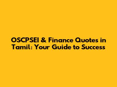 OSCPSEI & Finance Quotes In Tamil: Your Guide To Success