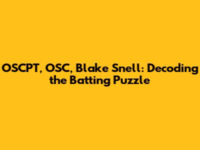 OSCPT, OSC, Blake Snell: Decoding The Batting Puzzle