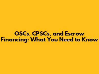 OSCs, CPSCs, And Escrow Financing: What You Need To Know