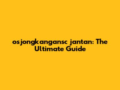 Osjongkangansc Jantan: The Ultimate Guide