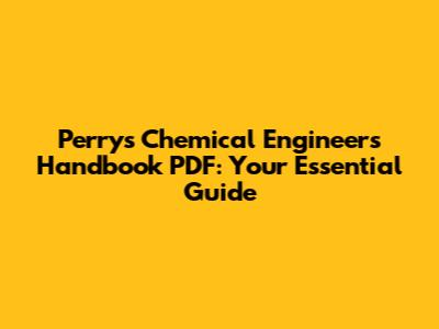 Perry's Chemical Engineers' Handbook PDF: Your Essential Guide