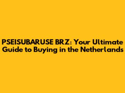 PSEISUBARUSE BRZ: Your Ultimate Guide To Buying In The Netherlands