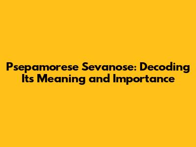 Psepamorese Sevanose: Meaning And Significance Explained