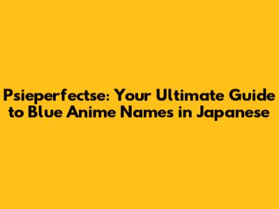 Psieperfectse: Your Guide To Blue Anime Names In Japanese