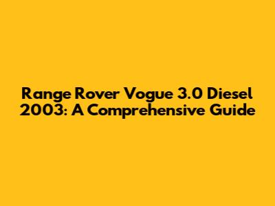 Range Rover Vogue 3.0 Diesel 2003: A Comprehensive Guide