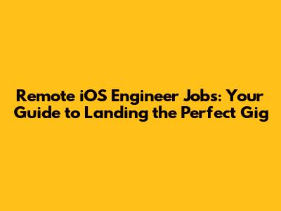 Remote IOS Engineer Jobs: Find Your Dream Role