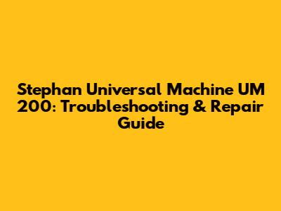 Stephan UM 200: Troubleshooting & Repair Guide