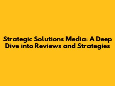 Strategic Solutions Media: In-Depth Reviews & Insights