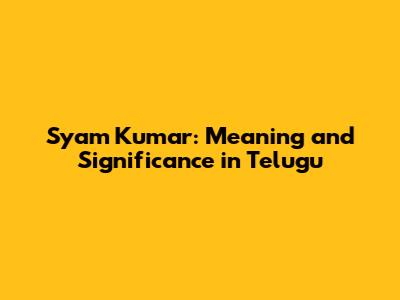 Syam Kumar: Meaning And Significance In Telugu