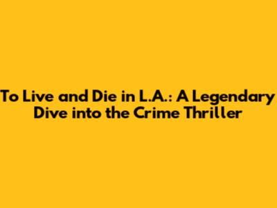 To Live And Die In L.A.: A Legendary Dive Into The Crime Thriller