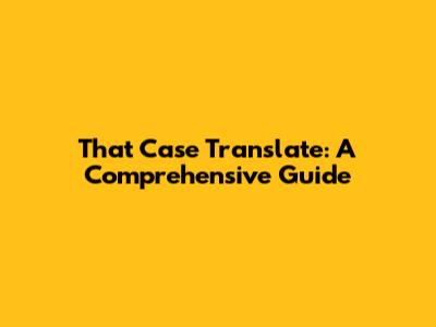 Translating That Case: A Comprehensive Guide