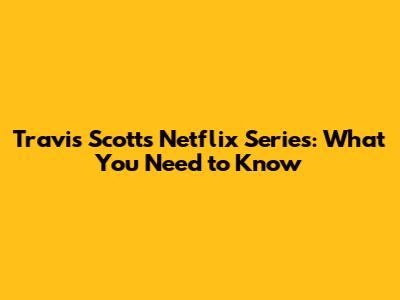 Travis Scott's Netflix Series: What You Need To Know