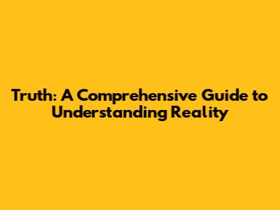 Truth: A Comprehensive Guide To Understanding Reality