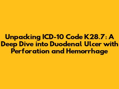 Hey guys! Today, we're going to tackle a topic that might sound a bit technical at first, but trust me, it's super important if you're dealing with medical coding or trying to understand specific diagnoses. We're diving deep into ICD-10 code K28.7, which specifically refers to a duodenal ulcer with perforation and hemorrhage. Now, that's a mouthful, right? But it essentially means there's a nasty sore in the first part of your small intestine (the duodenum), and it's not just sitting there – it's leaking (perforation) and bleeding (hemorrhage). This is a serious medical emergency, and understanding it is key for healthcare professionals and even patients wanting to be more informed. We'll break down what this code means, the common causes behind it, the signs and symptoms you absolutely need to watch out for, and why accurate coding is such a big deal in the healthcare world. So, grab your virtual magnifying glass, and let's get to the bottom of ICD-10 code K28.7!