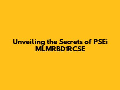 Unveiling the Secrets of PSEi MLMRBD1RCSE