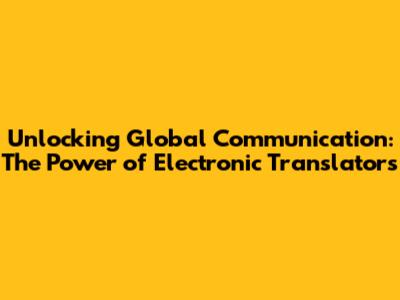 Unlocking Global Communication: The Power Of Electronic Translators